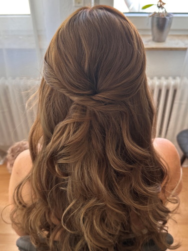 Ich arbeite mit hochwertigen, professionellen Produkten, ruhiger und präziser Technik sowie hygienischer Ausstattung. So hält dein Styling zuverlässig von der Trauung bis zur Party – auch bei feinem Haar, warmem Wetter oder langen Feiern.
